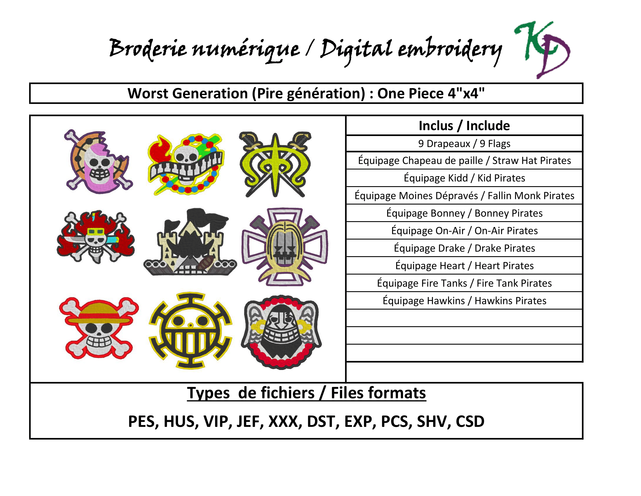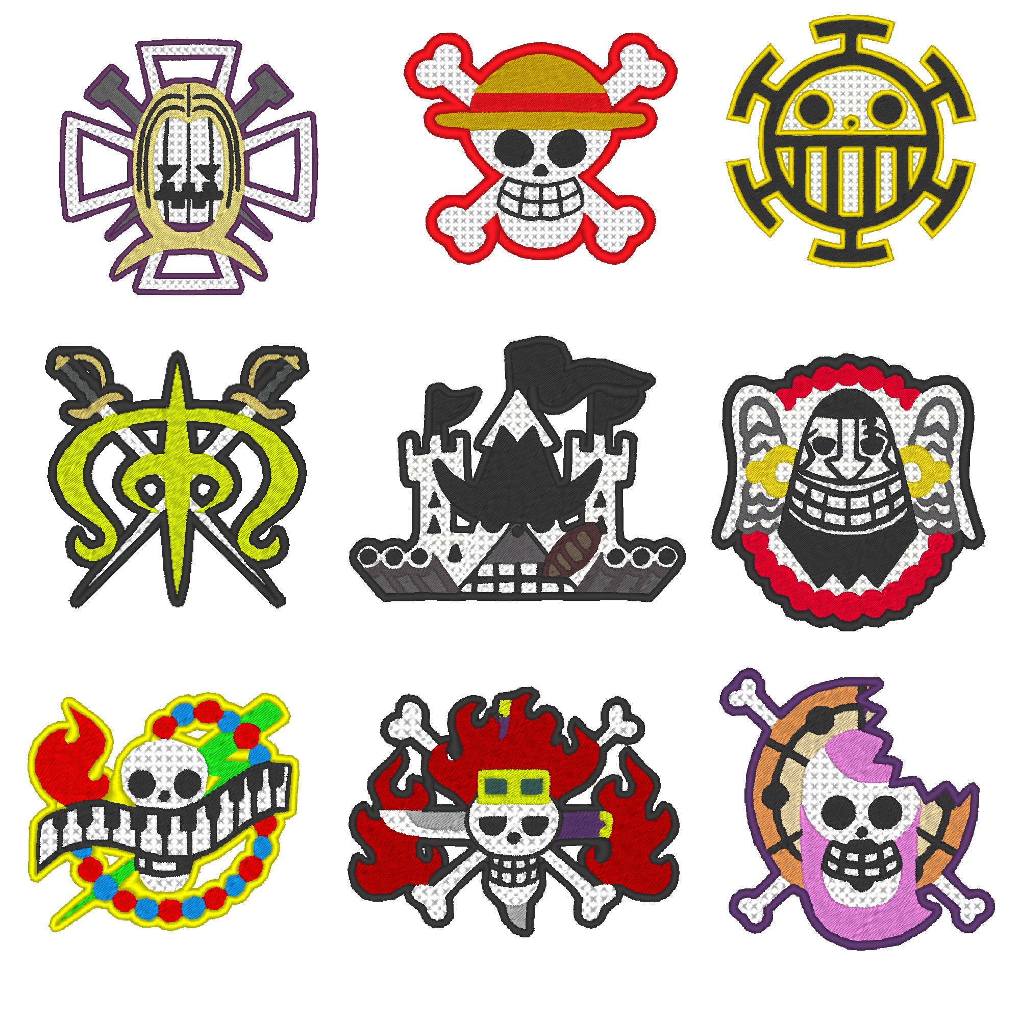Drapeau Équipage : One Piece – Broderie numérique – 4″x4″